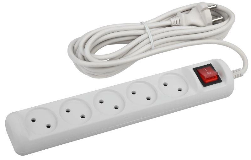 Удлинитель 5х5м без заземл. 10А IP20 U-5s-5m-2х1 ПВС 2х1 с выкл. Эра Б0044057