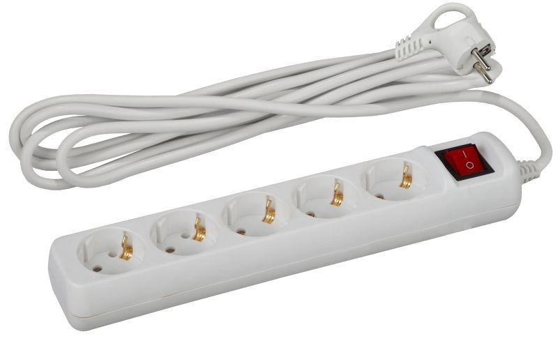 Удлинитель 3х5м ПВС 3х0.75 с защ. шторк. с заземл. IP20 с выкл. 220В 10А 2200Вт бел. КОСМОС YKsm5m-3g-Z-V10A-W