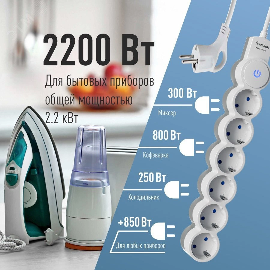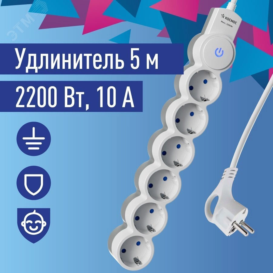 Бытовой удлинитель на 6 гнезд, длина шнура 5 м. Диаметр сечения провода - 3*0,75 мм?. Тип провода - ПВС, номинальный ток 10 А, максимальная мощность - 2200 Вт. С заземлением и выключателем. Надежный корпус и контактная группа из латуни не деформируется на протяжении всего срока службы.