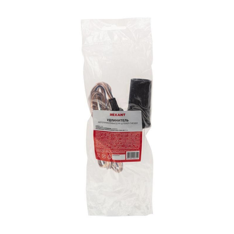 Полное описание: Удлинитель автоприкуривателя 10А IP20 штекер-гнездо 1.5м Rexant 16-0218