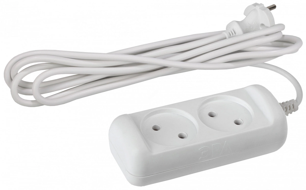 Удлинитель бытовой ЭРА. Серия U. Максимальная мощность 10 А/ 2200 Вт. Без заземления. Провод ПВС.