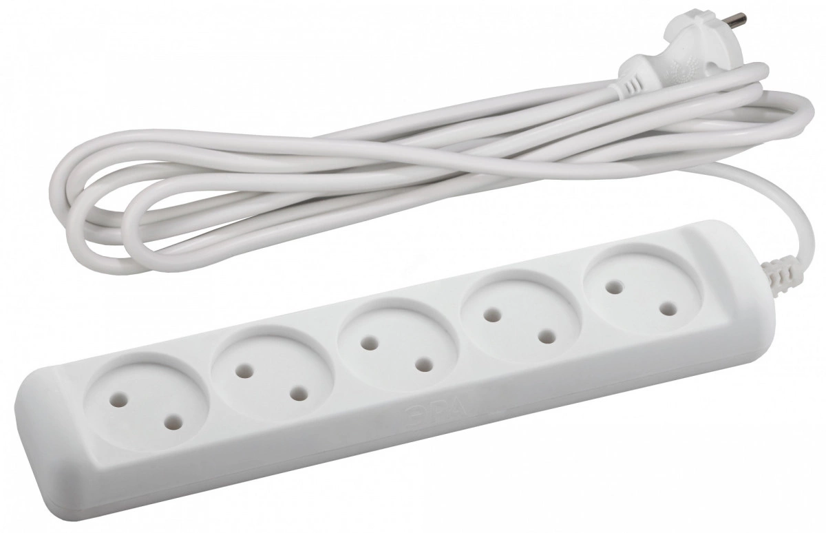 Удлинитель электрический Эра U-5-5m без заземления, ПВС, 2x1мм2, 5 розеток, 5м. Рассчитан на максимальную мощность 10А/2200 Вт. Удлинитель Эра станет Вашим надежным помощником, если Ваши любимые электроприборы находятся далеко от розеток. Провод в удлинителях Эра сделан из 100% меди, что делает его абсолютно пожаробезопасным. Корпус выполнен из ударопрочного и негорючего пластика (полипропилен). В моделях с заземлением у вилки есть кольцо для удобного извлечения из розетки. Модель удлинителя на 10А позволяет подключить мощные бытовые приборы общей нагрузкой до 2200Вт. Не бойтесь включить чайник, обогреватель, микроволновку или другие электроприборы. Толстый провод удлинителя Эра гарантирует полную безопасность. Дизайн удлинителя разработан в России командой Эра Style.