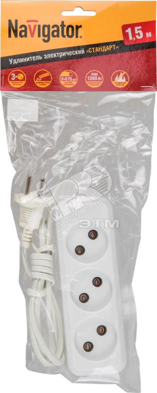 Полное описание: Удлинитель бытовой 3 розетки шнур 1.5м без заземления