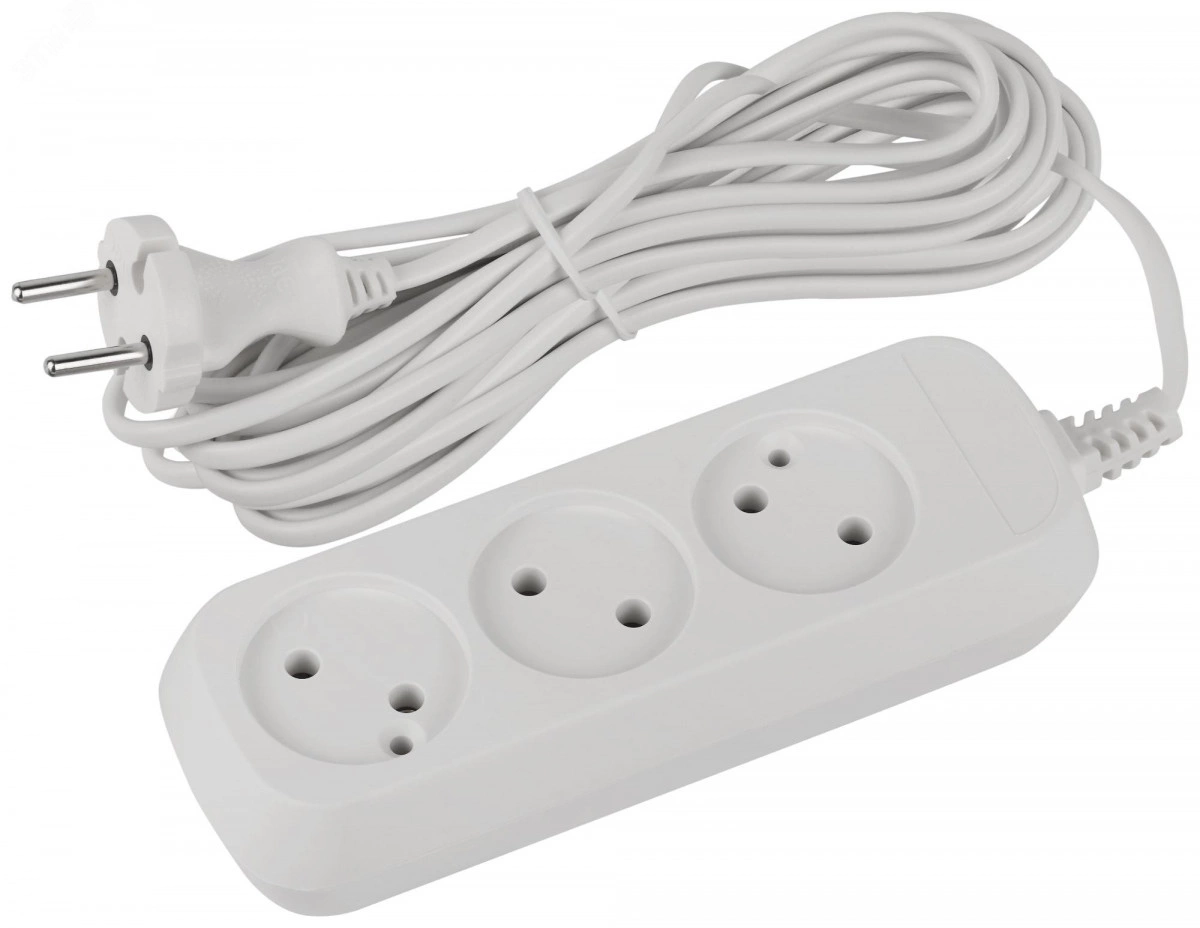Удлинитель электрический 3 розетки без заземления 5м ШВВП 2x0.75мм2 UDL-6-350 Greenline ЭРА