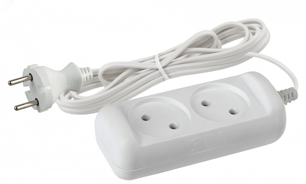 Компактный бытовой удлинитель на 2 гнезда. Рассчитан на одновременное подключение к розетке до двух маломощных электроприборов, максимальная нагрузка - 1300 Вт. Самая популярная длина шнура 3 метра. Надёжный двухжильный провод. Корпус изготовлен из прочного негорючего полипропилена с защищающими от возгорания антипиренами. Закруглённые углы, брендирование на вилке и корпусе, базовый белый цвет этот удлинитель отличается аккуратным приятным дизайном.