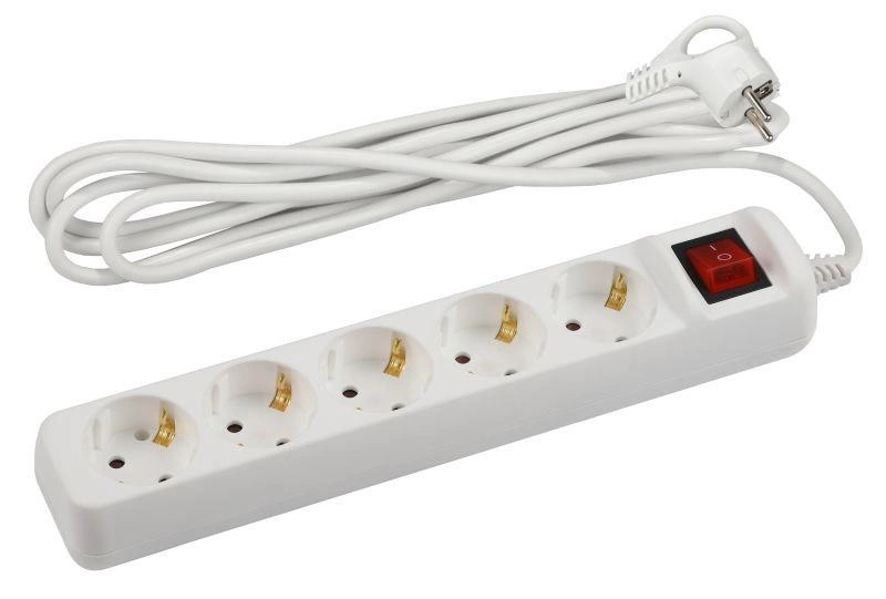 Удлинитель 3х5м ПВС 3х0.75 с защ. шторк. с заземл. IP20 с выкл. 220В 10А 2200Вт бел. КОСМОС YKsm5m-3g-Z-V10A-W