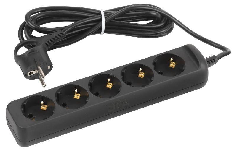 Удлинитель электрический UX-5e-3m-B с заземлением 5 розеток 3м ПВС 3х0.75мм2 10А черн. Эра Б0057725