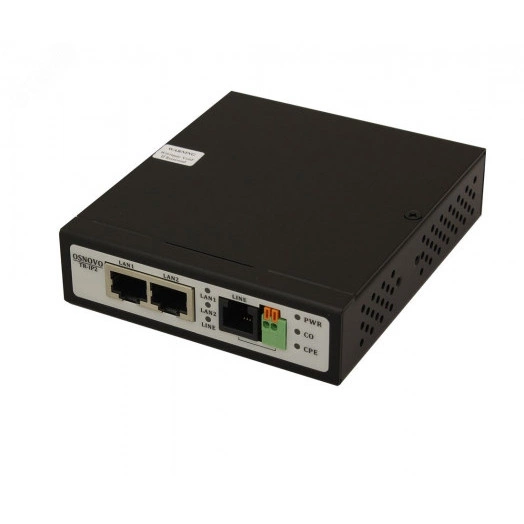 OSNOVO TR-IP2 - удлинитель Ethernet, который предназначен для передачи данных Ethernet по витой паре и телефонному кабелю на расстояние до 3000 м. Устройство поддерживает стандарт VDSL2 - это современное, недорогое, надежное и высокоскоростное решение, позволяющее обойтись существующим кабелем для подключения удаленных сегментов сети. Эта технология предлагает самую быструю на сегодня скорость передачи данных по существующим медным телефонным линиям без установки повторителей. Технология VDSL2 предназначена, в первую очередь, для объединения территориально разнесенных участков LAN, расстояние между которыми уже не позволяет использовать Ethernet на витой паре, но требуется высокая скорость передачи данных от 10 до 100 Мбит/c. Данная модель может работать по одной физической паре проводов одновременно с телефонным аппаратом.