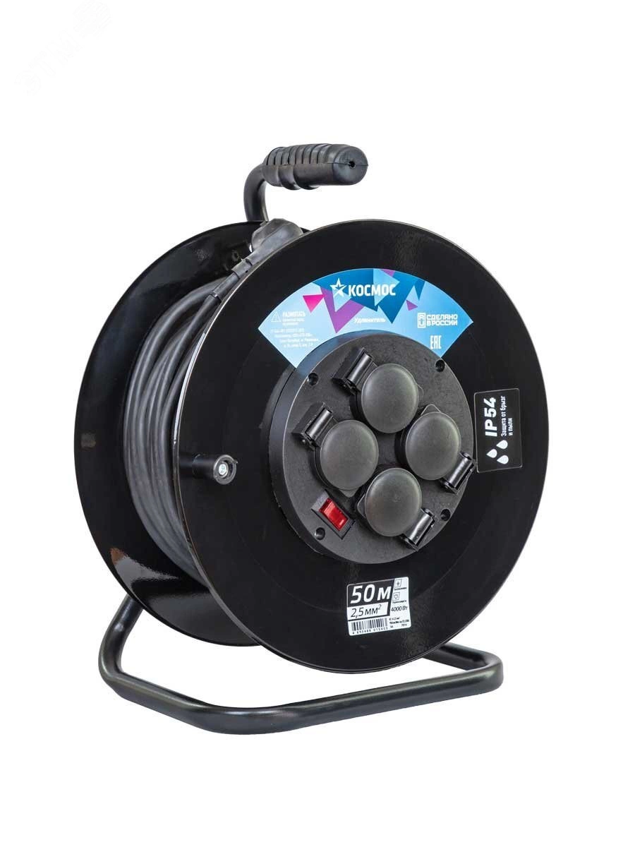 Катушка из металла, защита от пыли и влаги по стандарту IP54 с подпружиненными крышками, выключатель, RESET и встроенная термозащита, провод КГ (Кабель гибкий) - это кабель силовой очень гибкий с медными токопроводящими жилами с изоляцией и оболочкой из резины. Морозоустойчив до минус 40 градусов и максимальной мощностью нагрузки 4000 Вт. 50 м, 16 А, IP54, КГ 3*2,5 мм, 4 гнезда.