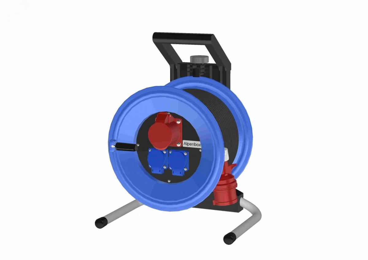 Удлинительна пластиковом барабане 25м. Степень защиты IP44. Кабель гибкий резиновый H07RN-F 5G2.5. На входе вилка CEE 16A/5p. На выходе розетки Schuko - 2, розетки СЕЕ 16А 5р - 1. Вариант исполнения изделия переносной.