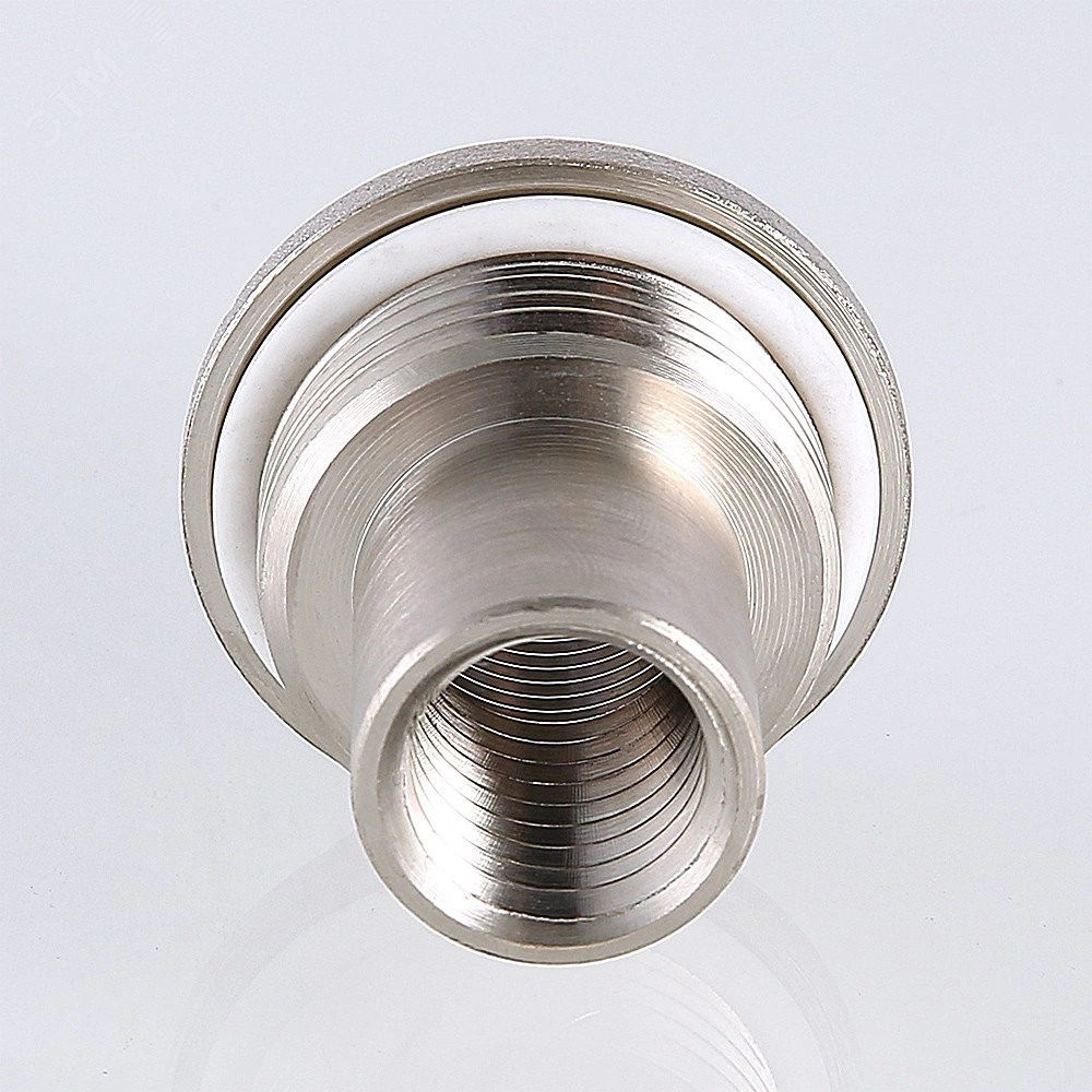 Удлинитель потока VT.503 – уникальная разработка инженеров VALTEC. Его применение является оптимальным решением проблемы неравномерного прогрева многосекционных радиаторов с односторонним подключением (когда работают только нескольких секций, расположенных ближе к точкам подключения отопительного прибора). Удлинитель потока VT.503 представляет собой латунную никелированную радиаторную футорку, дополненную патрубком с внутренней треугольной резьбой крупного шага. В этот патрубок ввинчивается отрезок металлополимерной трубы с наружным диаметром 16 мм. Удлинитель потока устанавливается в обратный коллектор радиатора, тем самым создавая `псевдодиагональное` одностороннее подключение. Удлинитель монтируется вместо радиаторной футорки, в его штуцер ввинчивается отрезок металлополимерной трубы 16 х 2,0 мм, длина которого на 60–80 мм меньше длины радиатора.