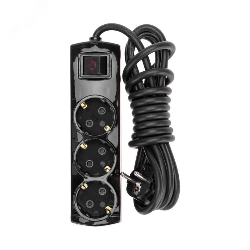 Удлинитель PREMIUM 3 гнезда, 3 м, 3х1,5 мм2, с/з, с выключателем, черный
