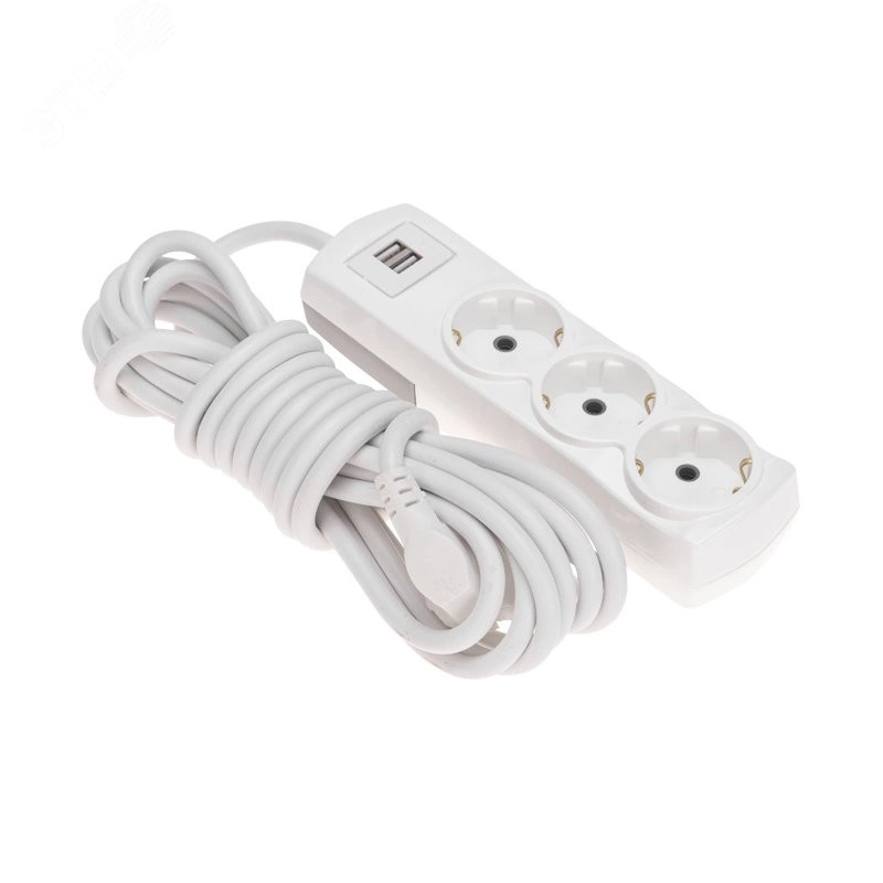 Удлинитель PREMIUM 3 гнезда, 5 м, 3х1,5 мм2, с/з, 2 USB, белый