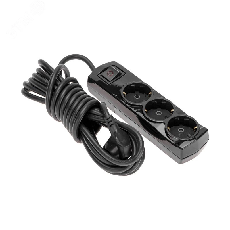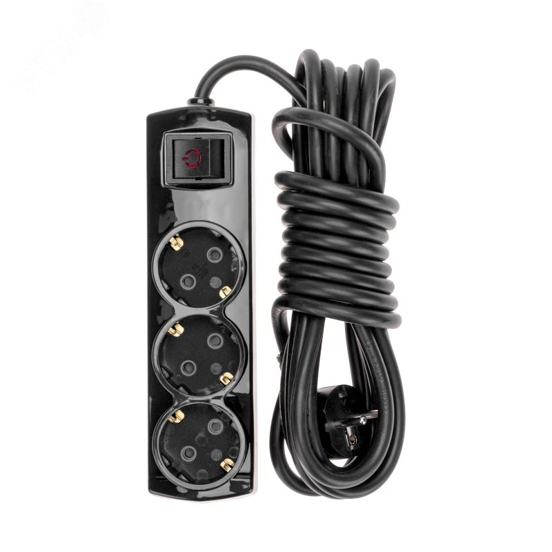 Удлинитель PREMIUM 3 гнезда, 5 м, 3х1,5 мм2, с/з, с выключателем, черный