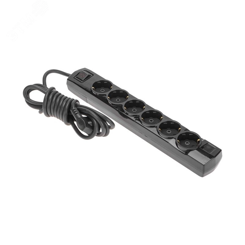 Удлинитель PREMIUM 6 гнезд, 3 м, 3х1,5 мм2, с/з, с выключателем, черный