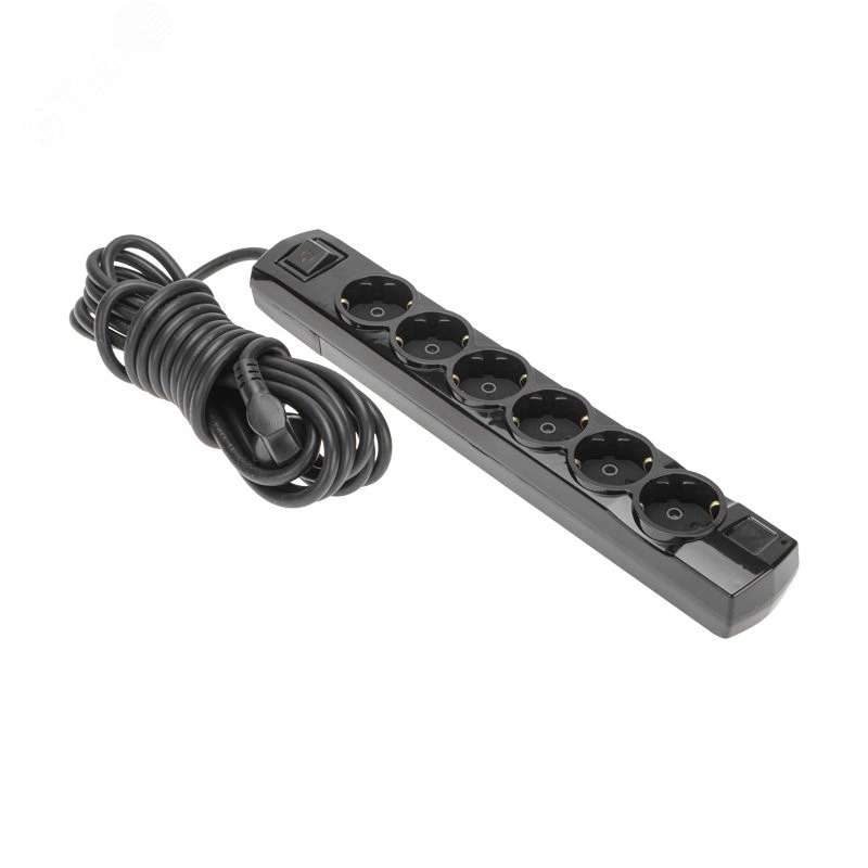 Удлинитель PREMIUM 6 гнезд, 5 м, 3х1,5 мм2, с/з, с выключателем, черный