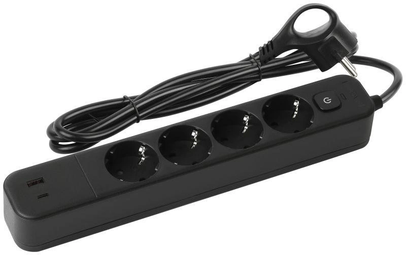 Удлинитель с сетевым фильтром 4х1.5м с заземл. 10А USF-4es-1.5m-2xUSBAC-B +2xUSBA+C 3.1A с выкл. с базов. защитой Эра Б0059572