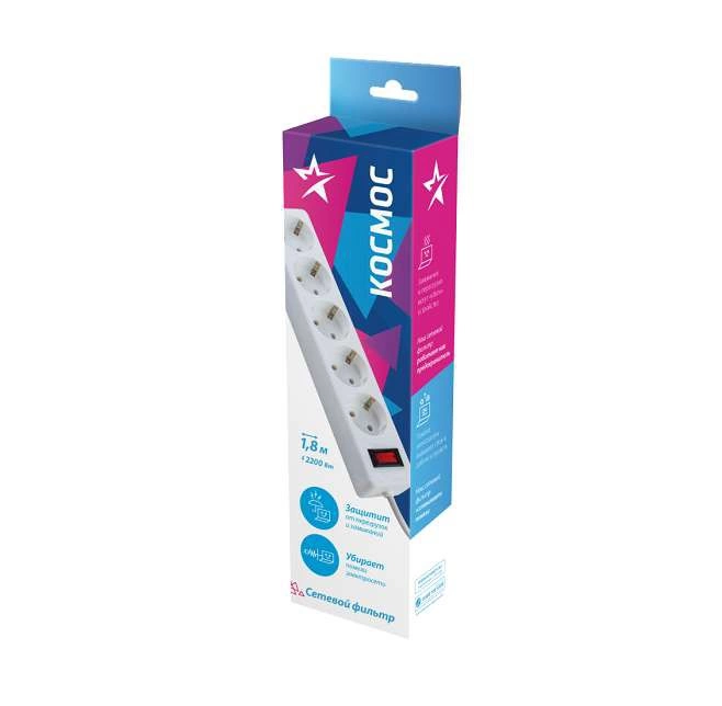 Полное описание: Удлинитель с сетевым фильтром 5х1.8м с заземл. 10А IP20 2.2кВт 3х0.75 индикатор сети бел. Космос FKsm1.8m-5g(W)