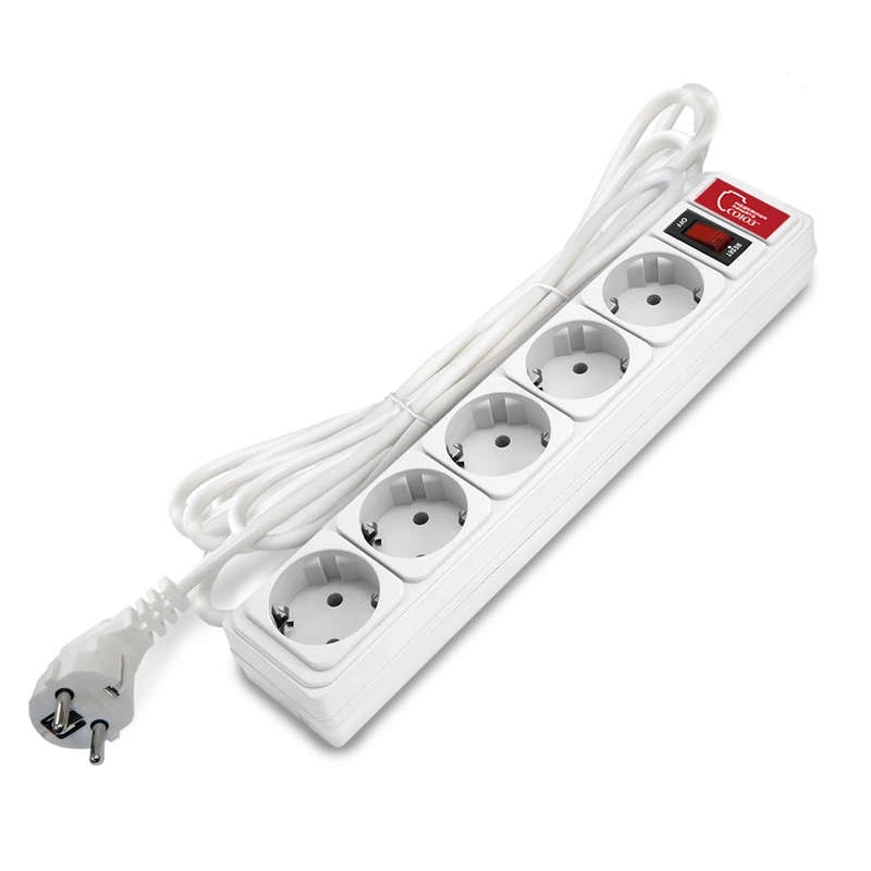 Удлинитель 3х5м ПВС 3х0.75 с защ. шторк. с заземл. IP20 с выкл. 220В 10А 2200Вт бел. КОСМОС YKsm5m-3g-Z-V10A-W