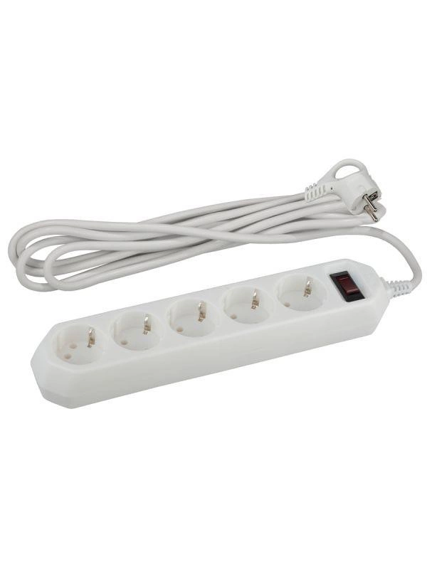 Удлинитель с сетевым фильтром 5х5м USF-5es-5m-W с заземл с выкл. ПВС 3х0.75 бел. ЭРА Б0019738