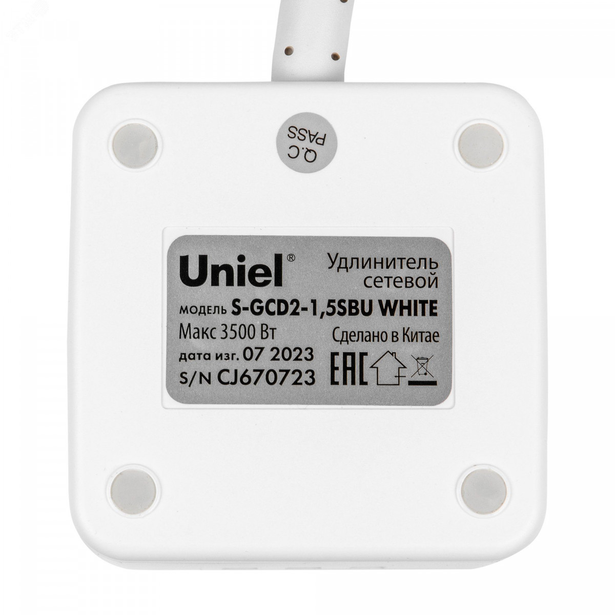 Удлинитель серии Standard c с заземлением шнур 1,5м 2 гнезда 3 USB 16А Белый ТМ Uniel S-GCD2-1,5SBU WHITE
