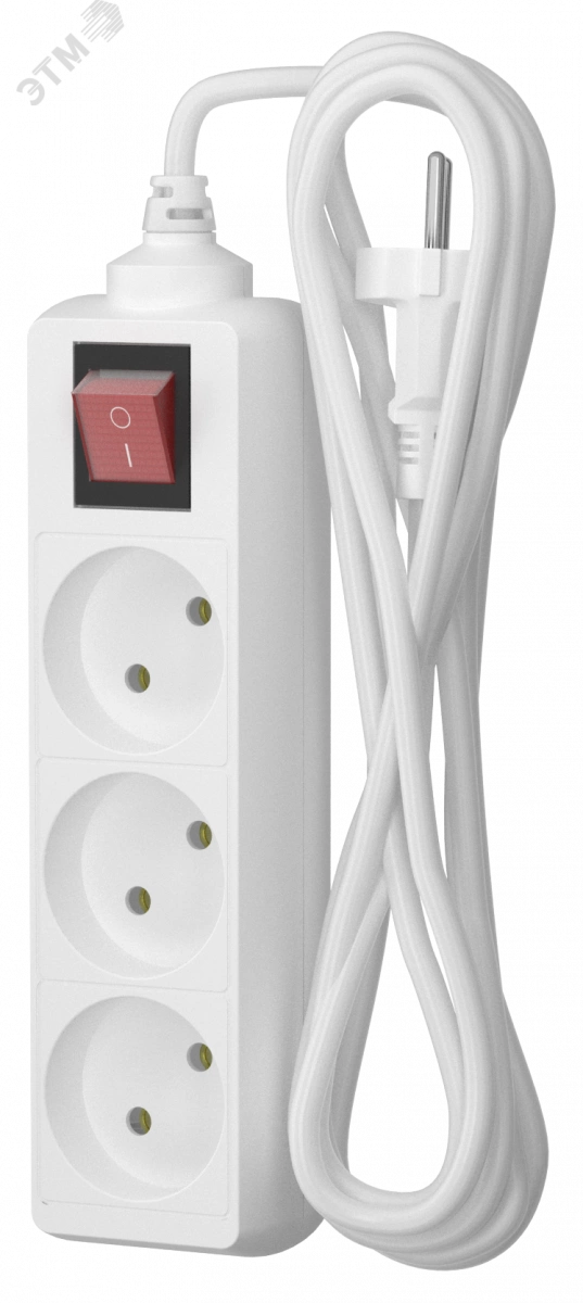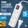 Удлинитель сетевой 10-23S, 2м, 3 розетки, 10А, с выкл., Белый