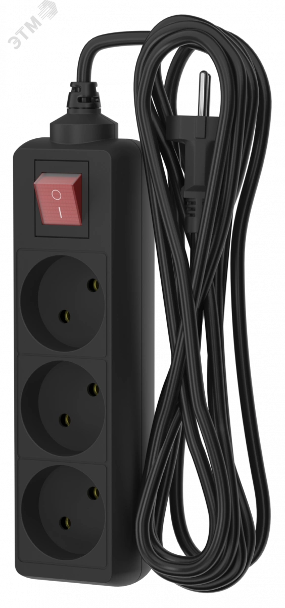 Удлинитель сетевой 10-33S, 3м, 3 розетки, 10А, с выкл., Черный