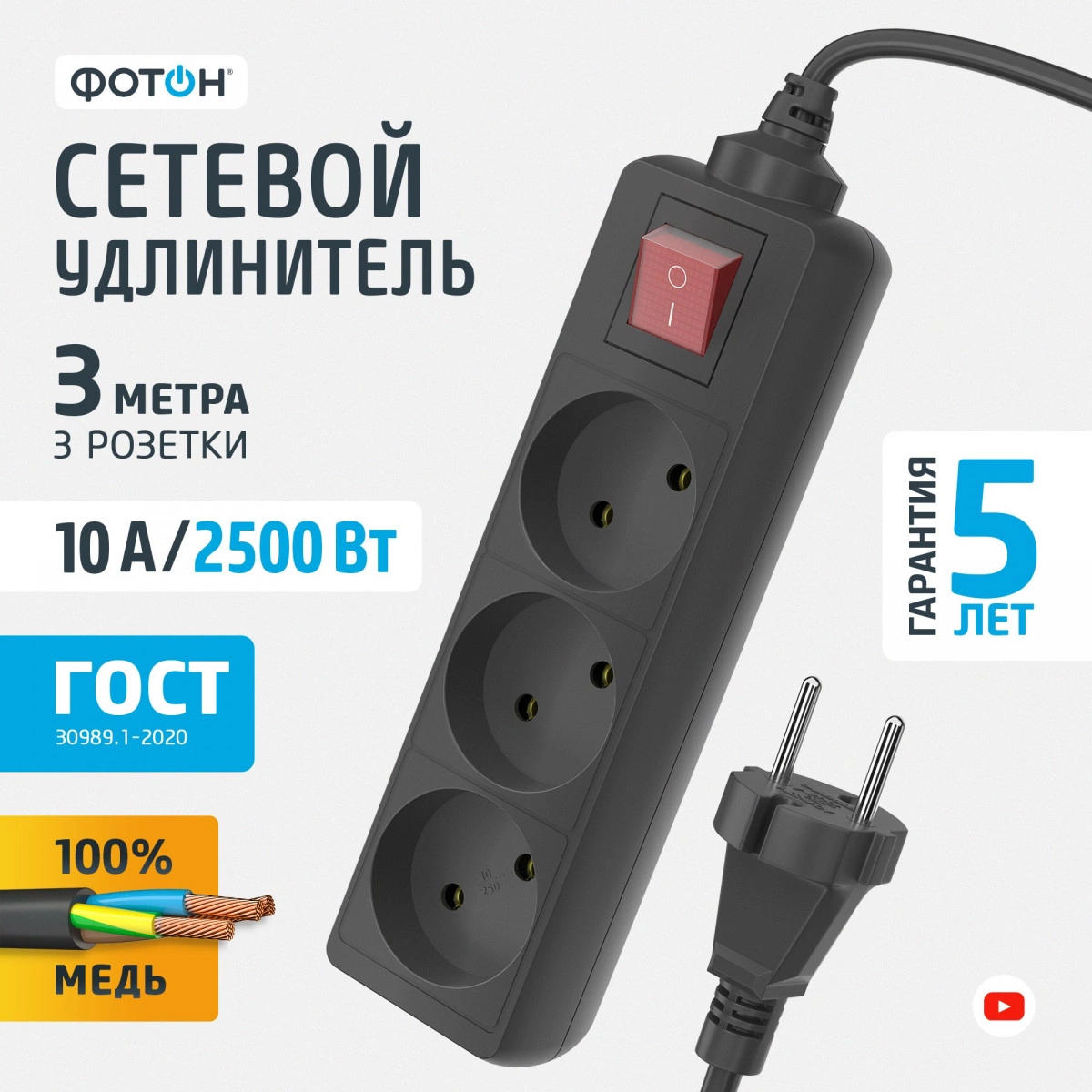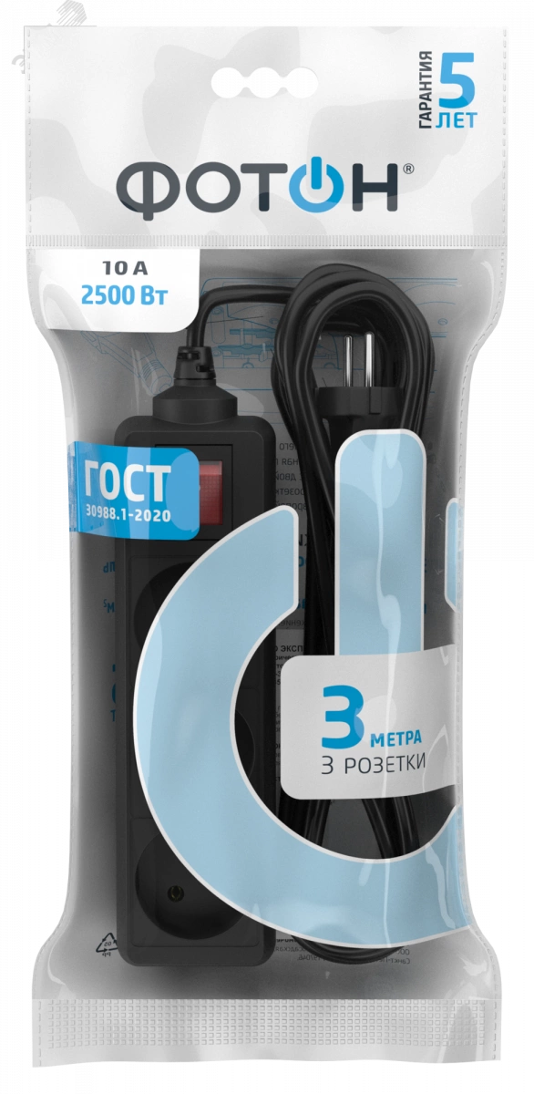 Корпус изготовлен из негорючего и ударопрочного пластика. Контактная группа изготовлена из латуни, что обеспечивает высокую электропроводность и максимально плотный контакт со штырями вилки подключаемых приборов. Гнездовые контакты расположены под углом для одновременного подключения нескольких приборов. Подходят для подключения штепсельных вилок российского и евростандарта. Провод ПВС медная токопроводящая жила в двойной ПВХ изоляции. Характеризуется устойчивостью к нагреву и повышенной гибкостью. Безусловная гарантия 5 лет. Вся продукция полностью соответствует нормам российского ГОСТ и EAC. Все удлинители и разветвители ''ФОТОН'' проходят двойной контроль качества и работоспособности.