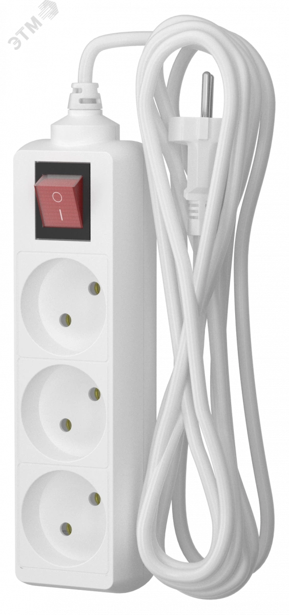 Удлинитель сетевой 10-33S, 3м, 3 розетки, 10А, с выкл., Белый