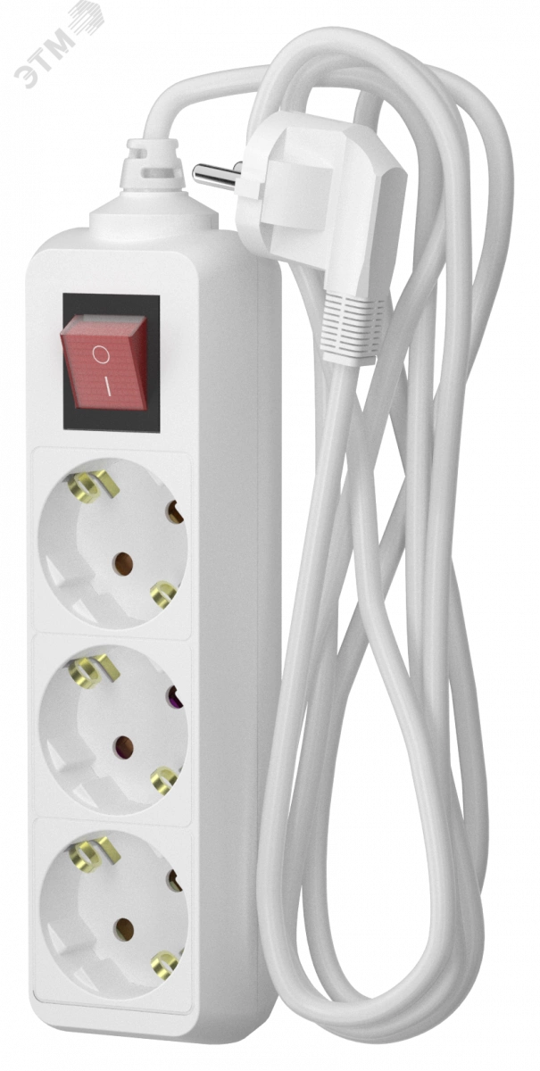 Удлинитель сетевой 16-33ЕS, 3м, 3 розетки, 16А, с выкл., с заземл., Белый
