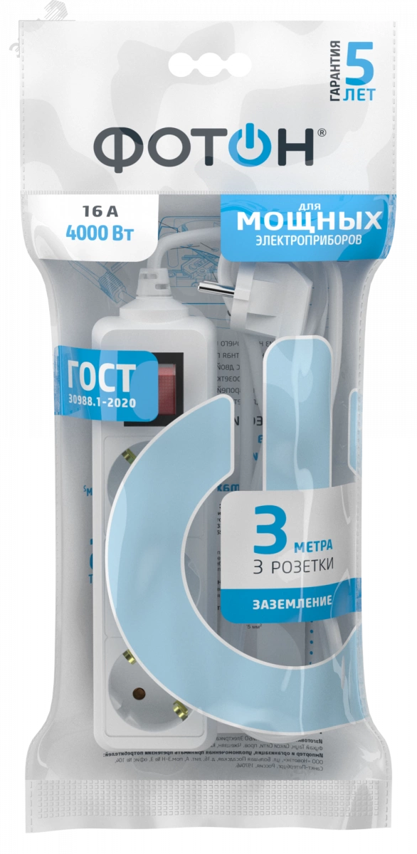 Корпус изготовлен из негорючего и ударопрочного пластика. Контактная группа изготовлена из латуни, что обеспечивает высокую электропроводность и максимально плотный контакт со штырями вилки подключаемых приборов. Гнездовые контакты расположены под углом для одновременного подключения нескольких приборов. Подходят для подключения штепсельных вилок российского и евростандарта. Провод ПВС медная токопроводящая жила в двойной ПВХ изоляции. Характеризуется устойчивостью к нагреву и повышенной гибкостью. Безусловная гарантия 5 лет. Вся продукция полностью соответствует нормам российского ГОСТ и EAC. Все удлинители и разветвители ''ФОТОН'' проходят двойной контроль качества и работоспособности.