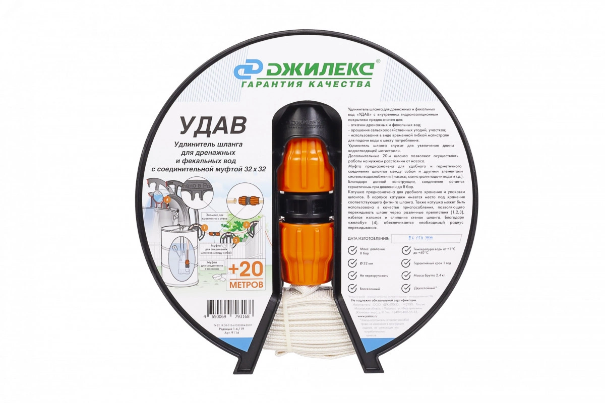 Удлинитель шланга служит для увеличения длины водоотводящей магистрали. Дополнительные 20 м шланга позволяют осуществлять работы на нужном расстоянии от насоса. Предназначен для отвода дренажных и фекальных вод, орошения сельскохозяйственных угодий и участков. Используются в виде временной гибкой магистрали для подачи (отвода) воды к месту потребления (сброса). Катушка, идущая в комплекте, обеспечивает удобное хранение шланга. Может быть использована в качестве приспособления, позволяющего перекидывать шланг через различные препятствия.
