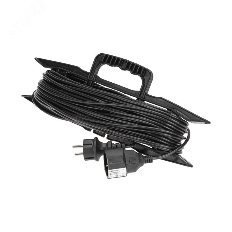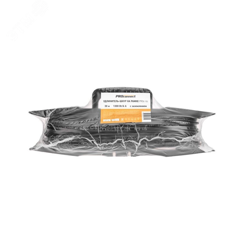 Удлинитель-шнур на рамке ПВС 3х0,75 мм2, 30 м, с/з, 6 А, 1300 Вт, IP20, черный