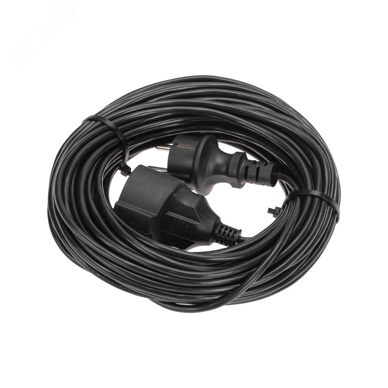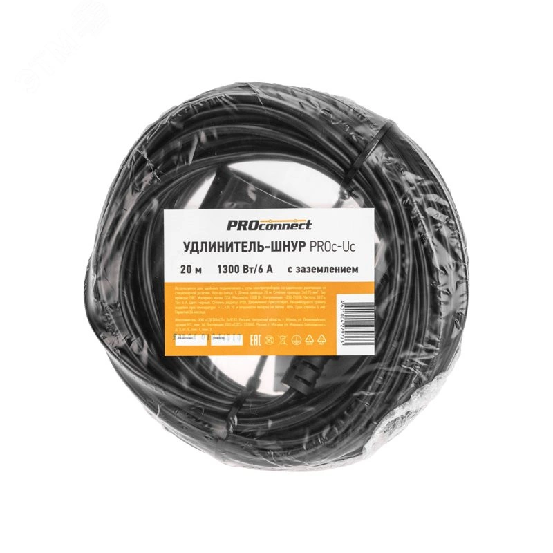Удлинитель-шнур ПВС 3х0,75 мм2, 20 м, с/з, 6 А, 1300 Вт, IP20, черный
