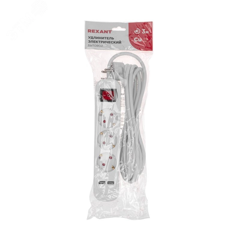 Удлинитель REXANT предназначен для подключения электрических приборов. Наличие 3 гнезд позволяет одновременно подключить несколько электроприборов. Каждое гнездо имеет заземление, что гарантирует безопасность при использовании. Универсальные розетки обеспечивают возможность подключения вилок как российского, так и европейского стандарта. Также предусмотрено два USB-разъема. Удлинитель оснащен защитными шторками, которые предназначены для предотвращения случайного попадания пыли, влаги или посторонних предметов в гнезда удлинителя, что способствует долговечности самого устройства и подключенных к нему приборов, а также обеспечивает защиту от поражения электрическим током. На корпусе устройства располагается выключатель, который позволяет при необходимости легко выключить или включить все устройства одновременно.