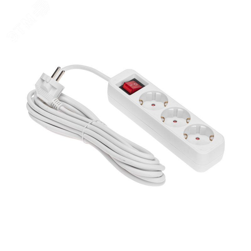 Удлинитель STANDARD 3 гнезда, 5 м, 3х1,0 мм2, с/з, с выключателем, белый