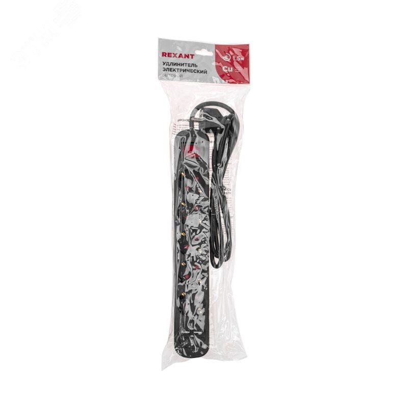 Удлинитель STANDARD 5 гнезд, 1,5 м, 3х1,0 мм2, с/з, с выключателем, 2 USB, черный