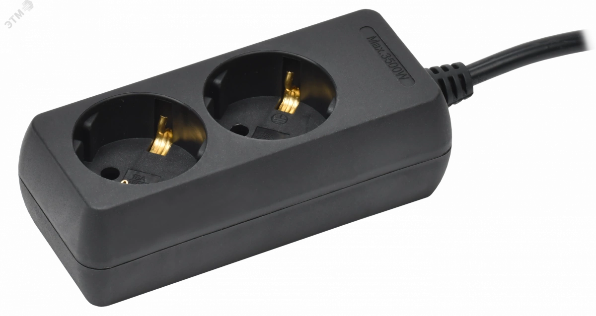 Полное описание: Удлинитель У02 2 места с заземлением 5м 3х1мм2 16А 250В черный