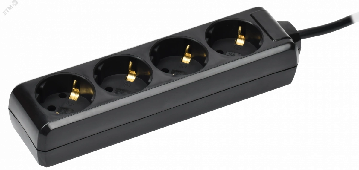 Полное описание: Удлинитель У04 4 места с заземлением 5м 3х1мм2 16А 250В черный