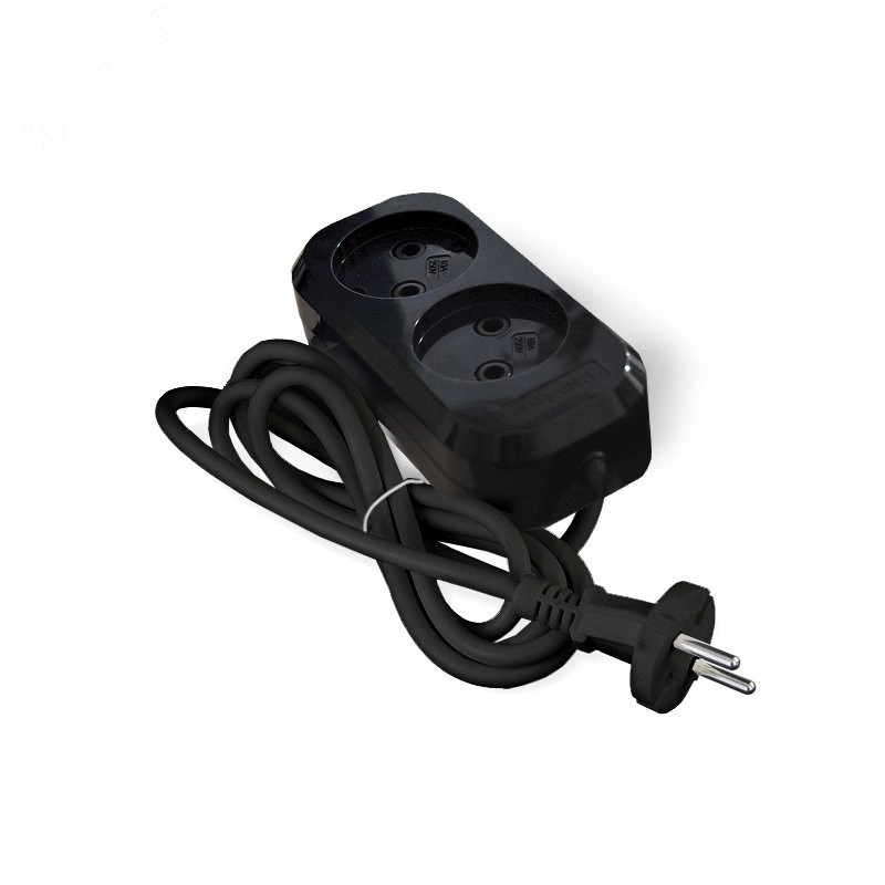 В изделии применяется провод марки ПВС ГОСТ сечением 2х0,75 мм2, корпус выполнен из АБС-пластика, который не выгорает на свету, не трескается и не бьется. Колодка глянцевого черного цвета на 2 гнезда без заземления. Латунные наконечники не допускают распушение жилы провода, подрезание проволочек крепежным винтом и обеспечивают достаточную площадь контакта между жилой и удлинителем. Вставка из негорючего материала обеспечивает пожаробезопасность удлинителя. Крепежное отверстие на задней стенке корпуса многоместной розетки удлинителя позволяет удобно закрепить ее на вертикальной поверхности. Прижимная планка надежно фиксирует провод внутри многоместной розетки удлинителя.