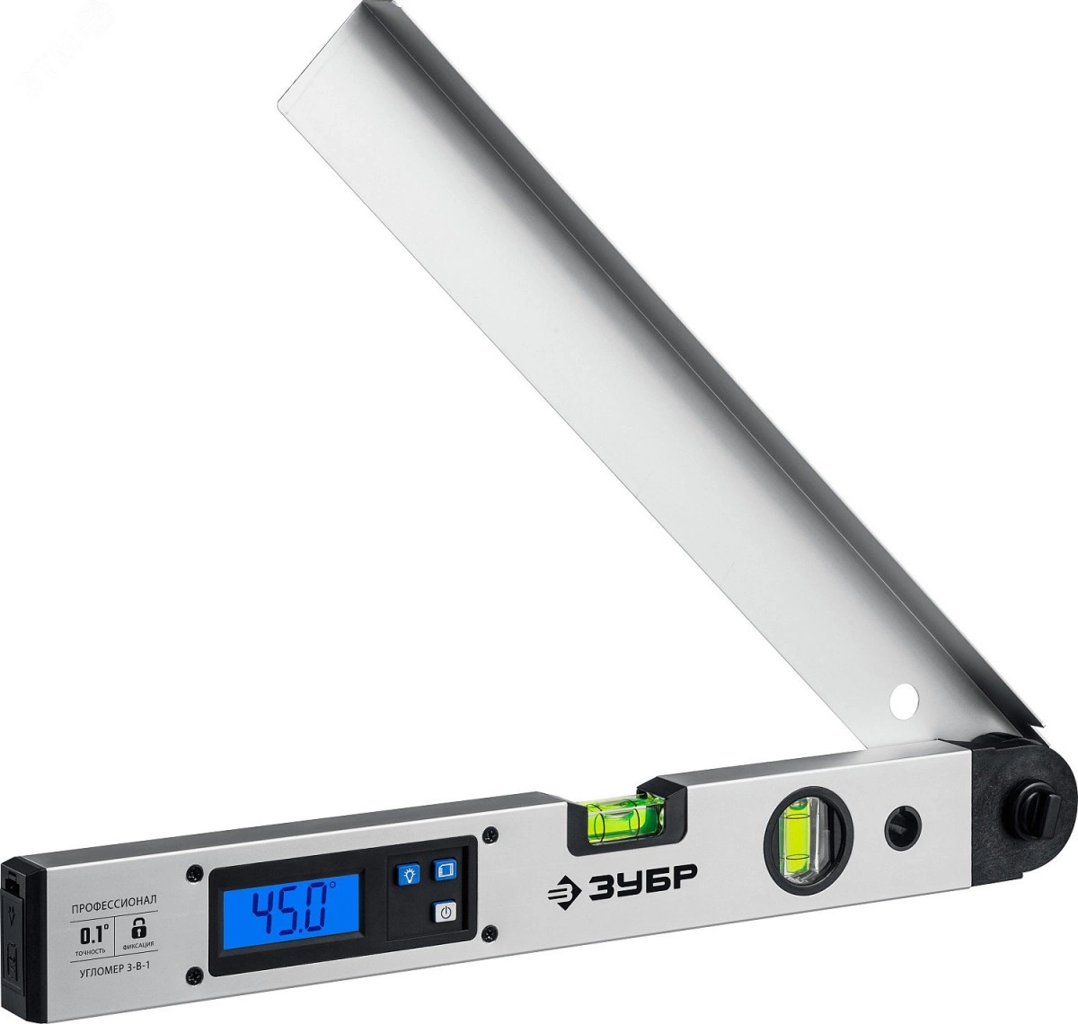 Угломер электронный 3 в 1, 400 мм, Диапазон 0-230град., Точность ±0,1град., HOLD, Подсветка, Фиксация угла, Профессионал