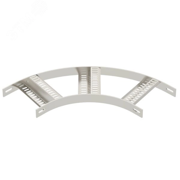 Угловая секция 90 градусов для кабельных лотков лестничного типа для судостроения, тип SLZ, с высотой боковой стенки 40 мм, с приваренными, перфорированными Z-образными перекладинами.