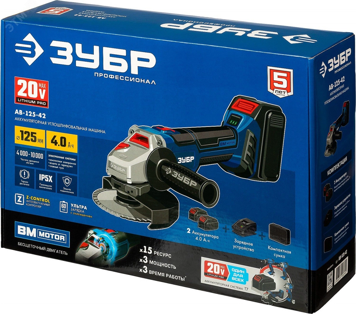 Угловая шлифовальная машина 20В бесщеточная, 2 АКБ (4Ач), в сумке, Профессионал