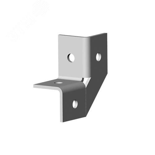 Угол 3D под 90 градусов имеет дополнительные пластины и укосину для повышения надежности соединения. Основной функцией является соединение двух профилей. Соединение выполняется с помощью канальных гаек и болтов.