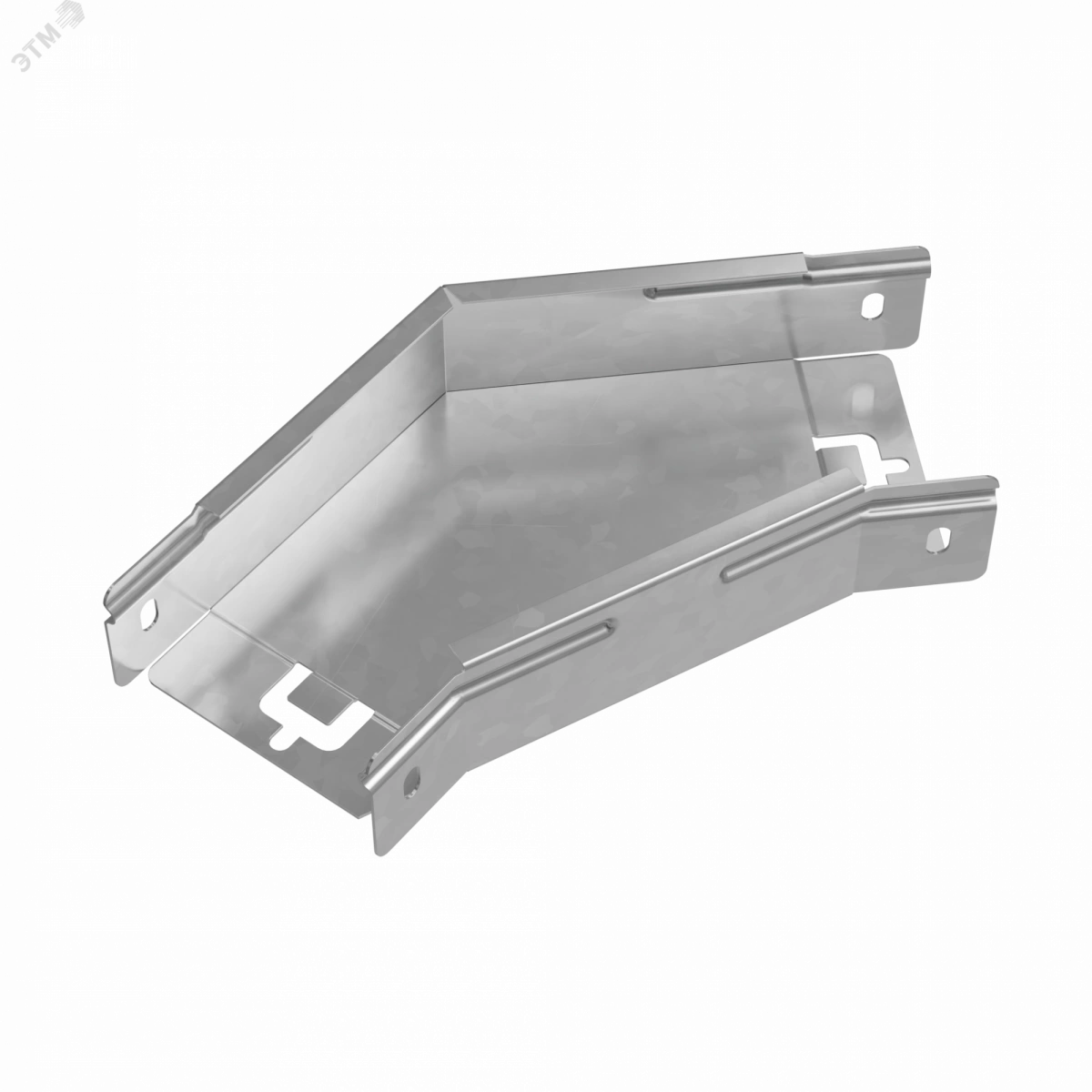 Для изменения направления кабельной трассы, рекомендуем применять горизонтальный угол 45 градусов серии ''PLUS'', который позволяет выполнить поворот силовых и слаботочных линий в горизонтальной плоскости объекта, а подготовленные концы изделия, для стыковки внахлёст, ускоряют процесс монтажа. Секция подходит для соединения c металлическим листовым лотком этой же серии шириной 100 мм и высотой борта 50 мм. Изделие выполнено из стали и оцинковано по методу Сендзимира. Предназначено для применения в местах предпочтительно с сухим климатом, внутри помещений и в слабоагрессивных средах, в соответствии с ГОСТ15150-69. Для дополнительной защиты элемента кабельной трассы от механических повреждений, попадания пыли и мусора, используйте крышку для угла серии ''PLUS''.