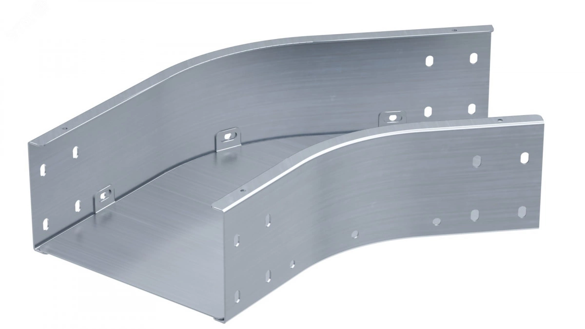Горизонтальный угол 45 градусов обеспечивает поворот трассы в горизонтальной плоскости под углом 45 градусов. В состав комплектного аксессуара входят детали, необходимые для качественного и надежного монтажа- соединительные пластины и крепежные элементы. Угол применяется с лотками линейки ‘S5 Combitech‘ с высотой борта 50 мм и шириной основания 300 мм. Толщина металла - 1,5 мм. Аксессуар представлен в исполнении ‘Сталь, оцинкованная по методу Сендзимира‘.