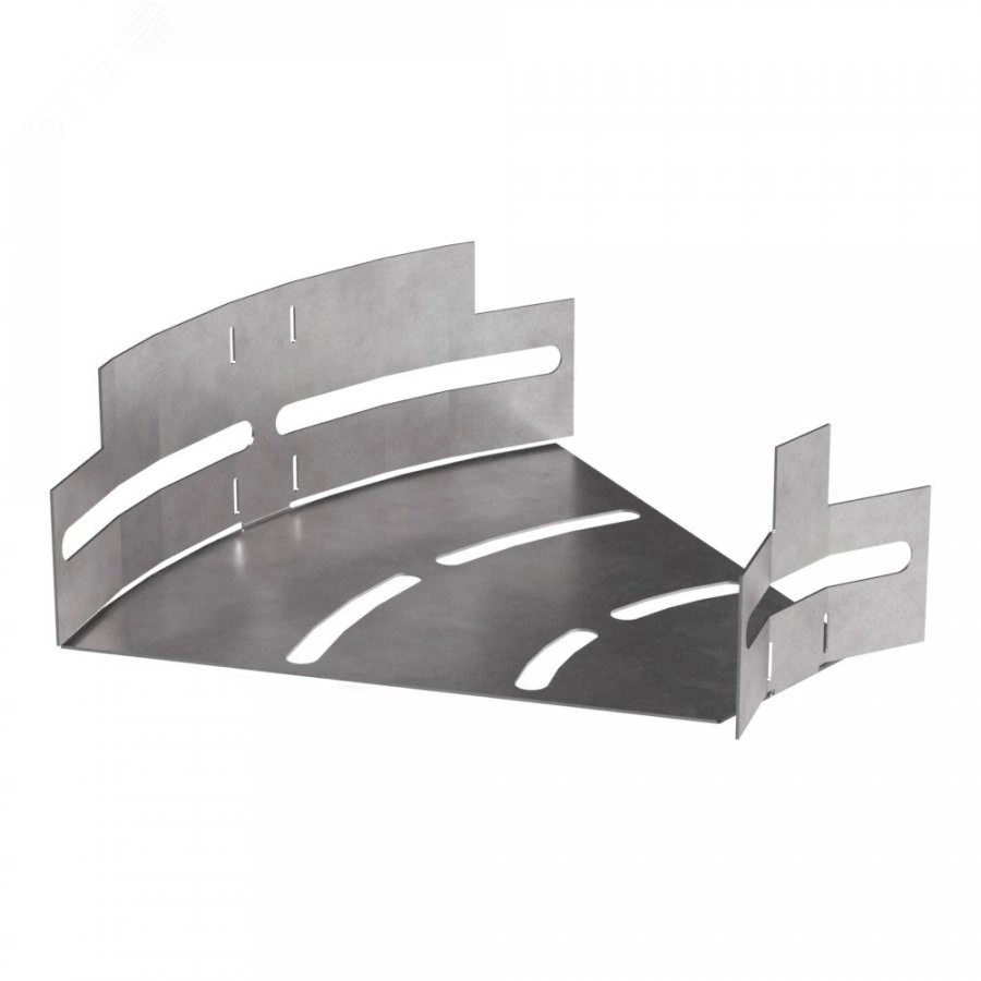 Аксессуары, изготовленные из стали с защитным покрытием по методу Сендзимира – это изделия, на которых защитное цинковое покрытие было нанесено на листовую сталь перед изготовлением. Толщина защитного покрытия варьируется от 10 до 22мкм. Климатическое исполнение изделий УХЛ2, что предусматривают эксплуатацию в помещении и под навесом, при температуре эксплуатации от -80 до +150 градусов Цельсия. Обеспечивает плавный переход горизонтальной кабеленесущей линии между лотками металлическими в диапазоне от 0 до 45 градусов.