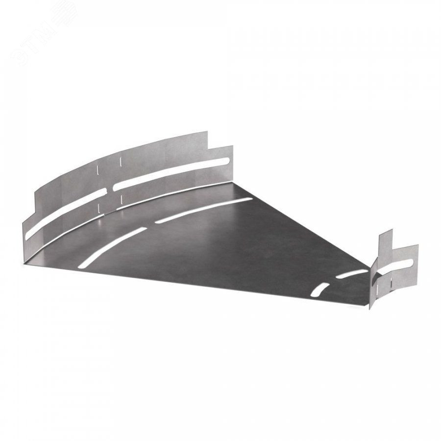 Аксессуары изготовленные из стали с защитным покрытием по методу Сендзимира – это изделия, на которых защитное цинковое покрытие было нанесено на листовую сталь перед изготовлением. Толщина защитного покрытия варьируется от 10 до 22мкм. Климатическое исполнение изделий УХЛ2, что предусматривают эксплуатацию в помещении и под навесом, при температуре эксплуатации от -80 до +150°С. Обеспечивает плавный переход горизонтальной кабеленесущей линии между лотками металлическими в диапазоне от 0 до 45 градусов.