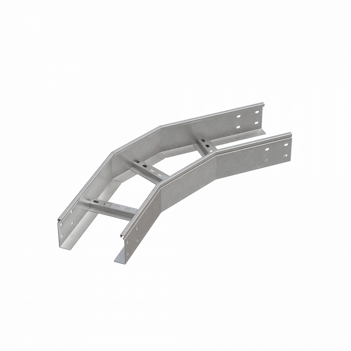 Горизонтальный лестничный угол 45 градусов позволяет выполнить поворот силовых и слаботочных линий в горизонтальной плоскости. Секция подходит для соединения c металлическим лестничным лотком шириной 100 мм и высотой борта 100 мм. Элемент выполнен из нержавеющей стали марки AISI304 – материала устойчивого к коррозии, высоким температурам и агрессивным средам. Используется на предприятиях пищевой и медицинской промышленности, химических заводах, в морских и прибрежных зонах, в соответствии с ГОСТ 15150-69. Соединение между секциями происходит с использованием подходящих крепежных элементов. Для дополнительной защиты элемента кабельной трассы от механических повреждений, попадания пыли и мусора, используйте крышку.