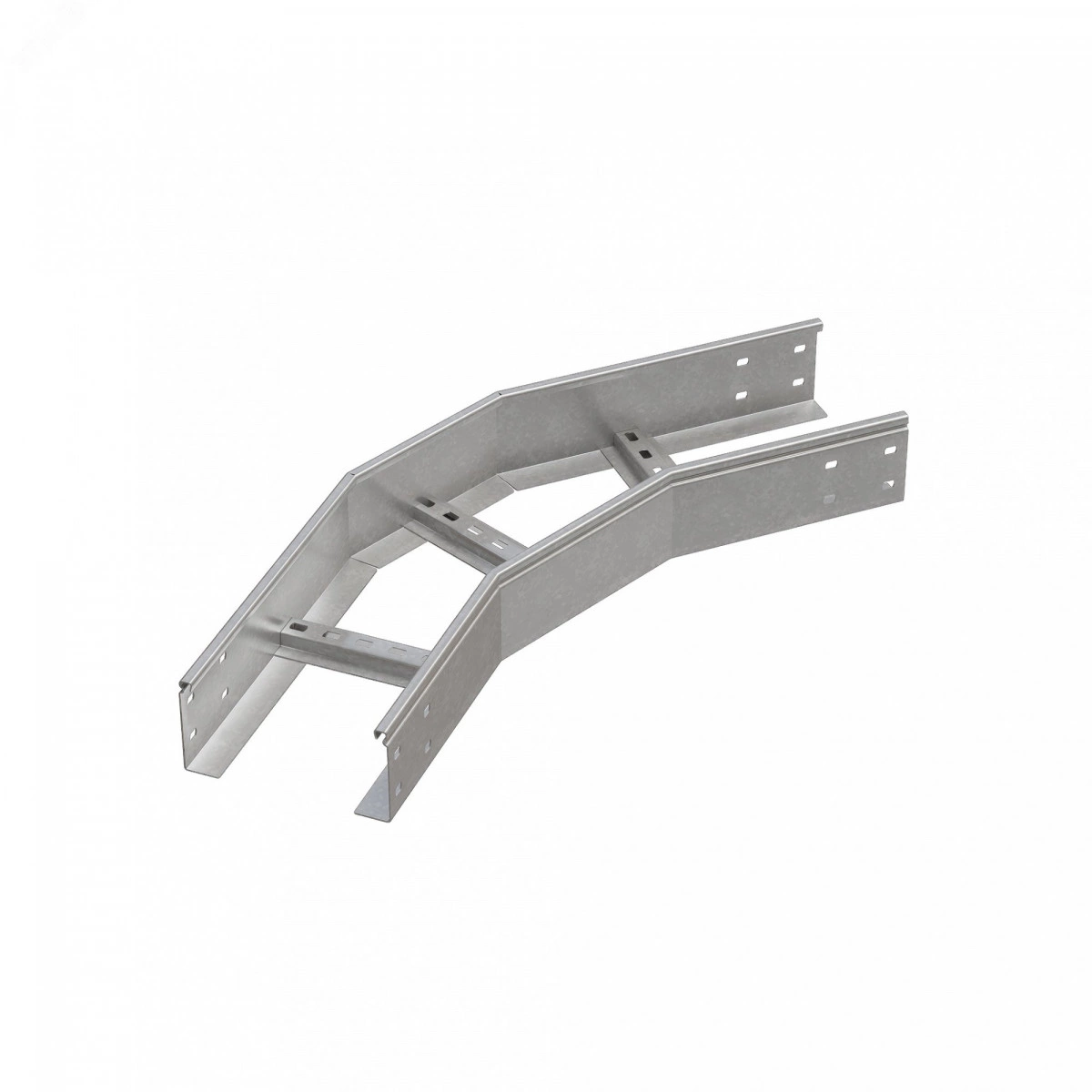 Горизонтальный лестничный угол 45 градусов позволяет выполнить поворот силовых и слаботочных линий в горизонтальной плоскости. Секция подходит для соединения c металлическим лестничным лотком шириной 150 мм и высотой борта 100 мм. Изделие оцинковано методом горячего погружения согласно ГОСТ 9.307-89 и используется для монтажа в помещениях с высокой влажностью и низкой загрязненностью, под открытым небом и в слабокоррозийной среде, в соответствии с ГОСТ 15150-69. Соединение между секциями происходит с использованием подходящих крепежных элементов. Для дополнительной защиты элемента кабельной трассы от механических повреждений, попадания пыли и мусора, используйте крышку.